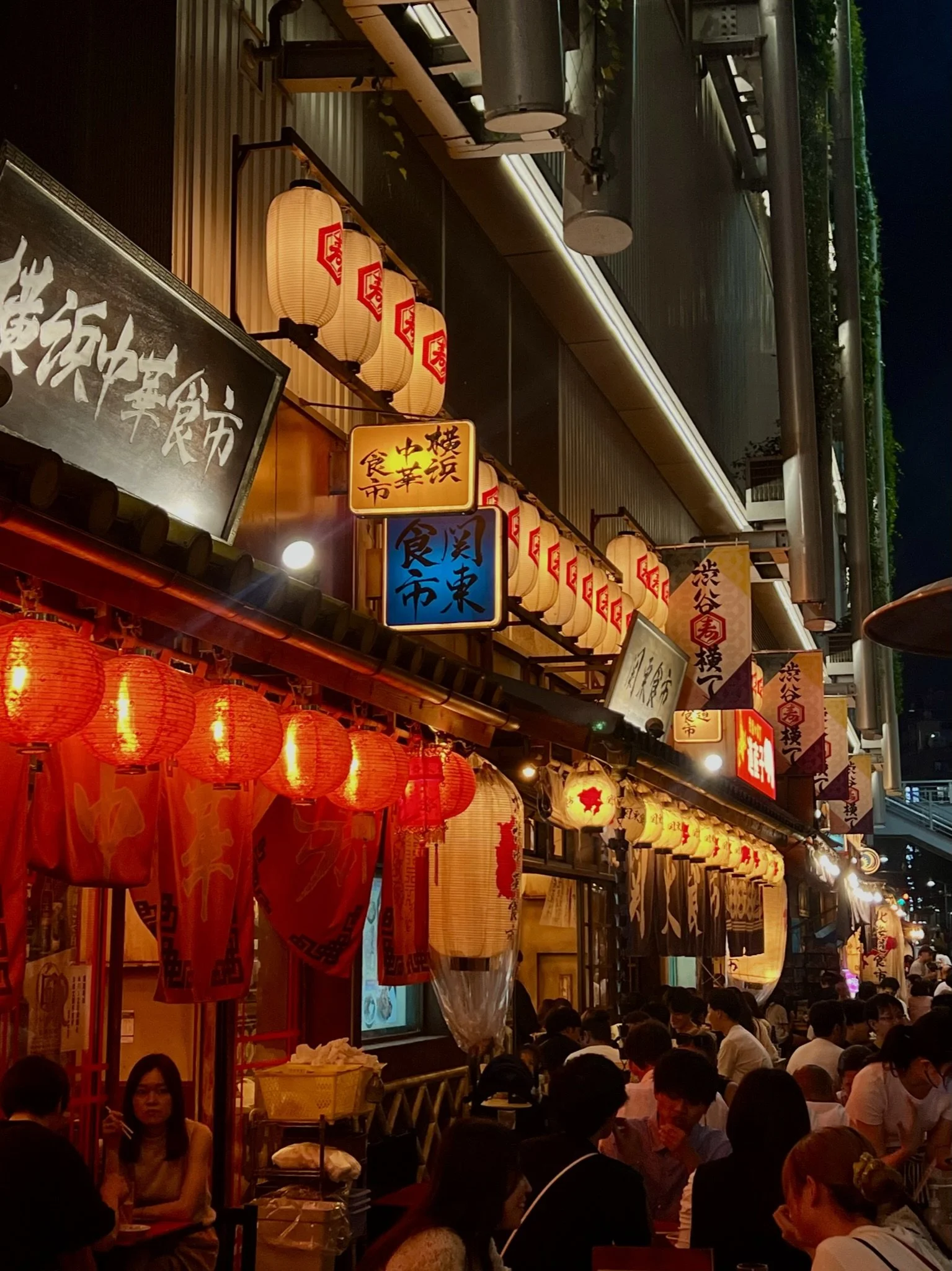 Moving swiftly along to dinner, we found the coolest collection of restaurants & bars a short walk from the Shibuya Crossing at Shibuya Miyashuta Park. Dumplings, lanterns, and a real-life sumo-wrestler, what more could you want? Loved the vibes here, and would definitely recommend it. I mean, look….