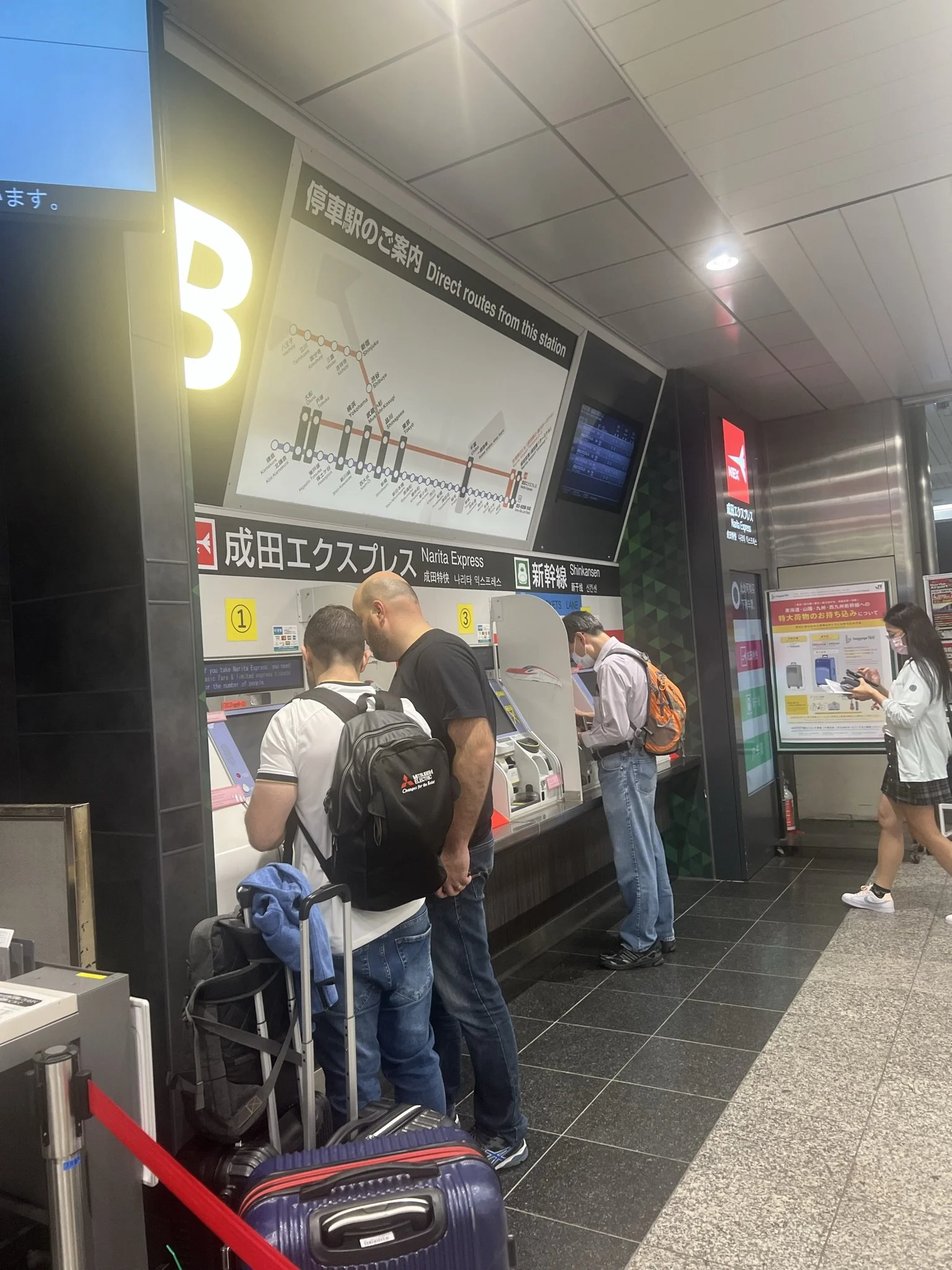 After arriving at Narita Airport, you can pick up a ticket for the Narita Express Train to all the major train stations in central Tokyo. I paid around $30 for a one-way ticket to Shinjuku Station, which took around 1.5 hours. The train ticket collection is kind of confusing when you arrive, but there are loads of train station employees who can help you book your ticket and assign your seat. FYI, the Narita Express is part of the JR network, and you can use your JR pass on this route. Insider Tip: Any train lines that identify as JY trains also seem to work for the JR pass, at least that was my experience, so often, when you are looking for a “JR” line, follow the signs for JY. I would also recommend purchasing your ticket at the desk with a person; the machines are intimidating when you get off an 11-hour flight, and the culture shock hits.